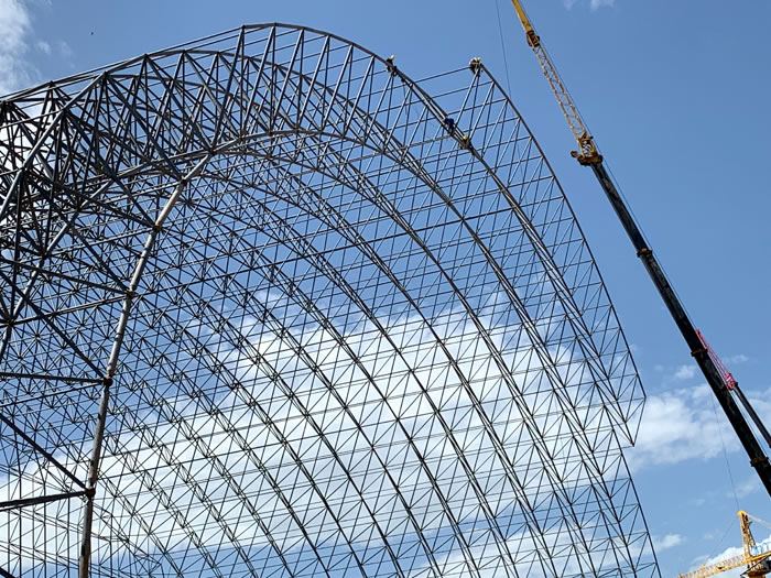 (2)网架加工前应对现场尺寸进行复测,确认无误后方可进行加工、安装;网架制作、运输、安装应遵守《空间网格结构技术规程》JGJ7-2010、《钢网架石首螺栓球节点》JG/T 10-2009、《钢网架石首螺栓球节点用高强度螺栓》 GB/T 16939-2016、《石首钢结构石首工程石首施工规范》 GB50755-2012、《石首钢结构石首工程石首施工质量验收标准》 GB50205-2020。